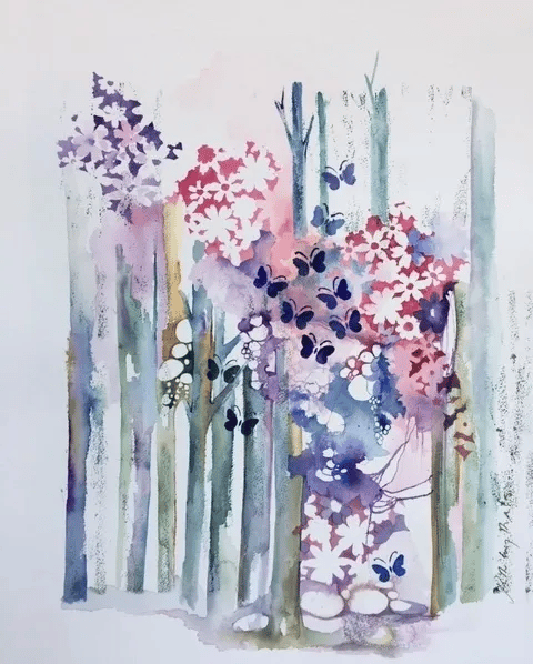 Woodland with Flowers and Butterflies